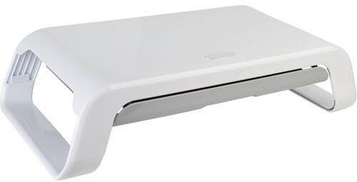 A monitorállvány két magasságban állítható: 90 és 120 mm. A billentyűzet a monitorállványra vagy alá helyezhető (maximum 38 cm hosszú). Beépített tárolórekesz. Csúszásmentes gumi lábak a maximális stabilitás érdekében.