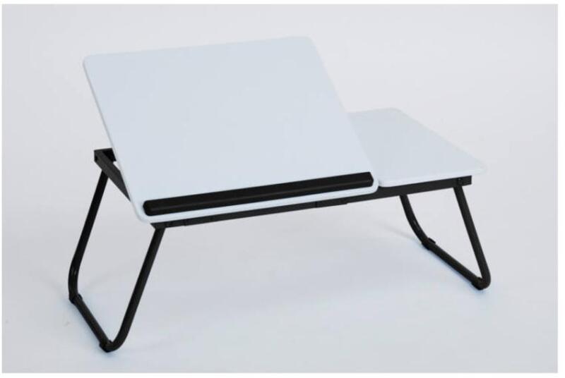 Praktikus asztalka laptopokhoz, amely több színben rendelhető. Egyik lapjának dőlésszöge állítható, a dönthető rész mérete 37x32 cm. A fix felületen az egér is jól használható.